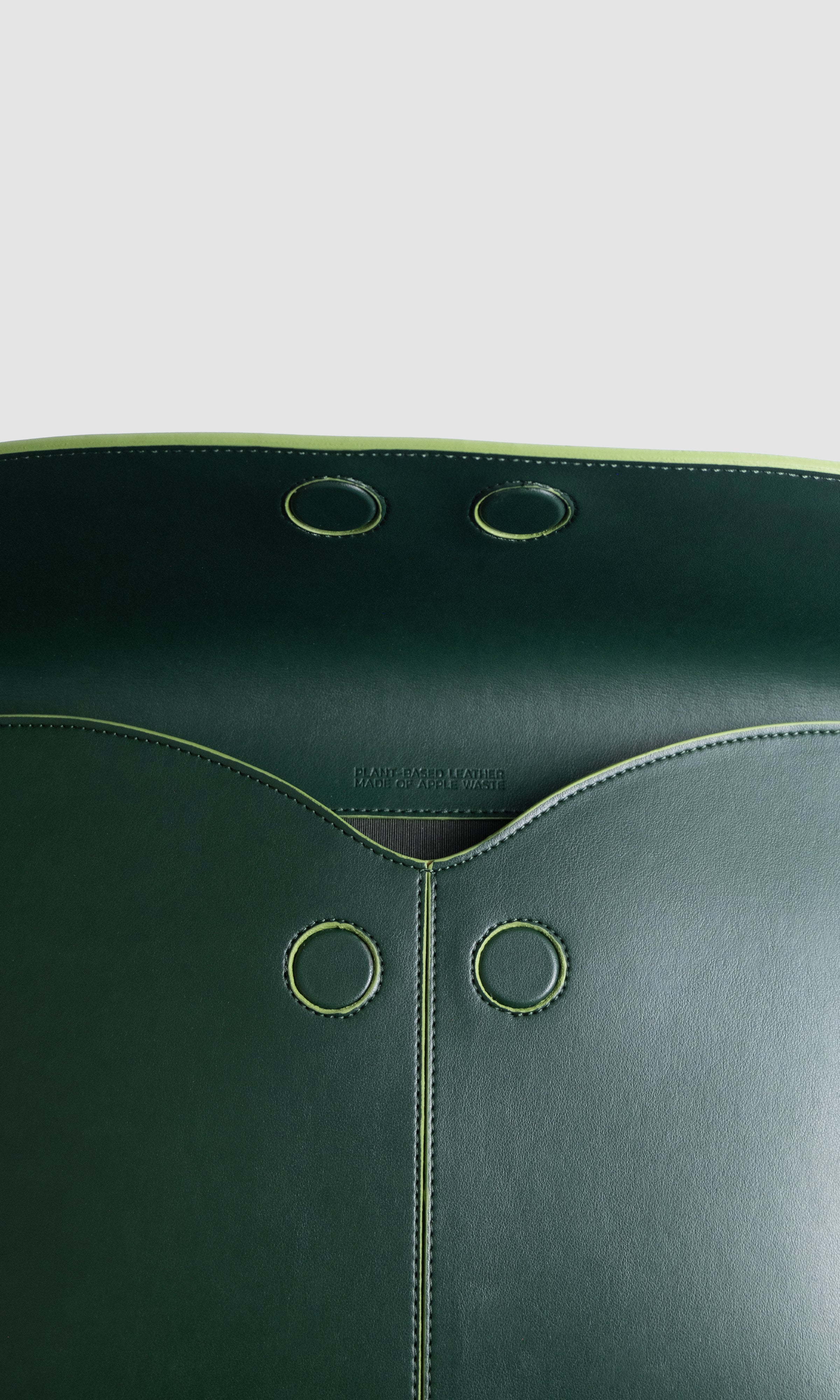 A spacious laptop bag designed for all occasions. The interior is thoughtfully structured to carry not only a laptop but also a charger, files, and notebooks. Two large inner pockets securely store smaller accessories. The magnetic closure system ensures both safety and ease of movement. The bag retains its upright and distinguished silhouette without compromising its form. It now features a rear rectangular slip-through handle for a more comfortable grip or effortless carrying by hand or arm. Comes with a protective bag made from recyclable cotton.
