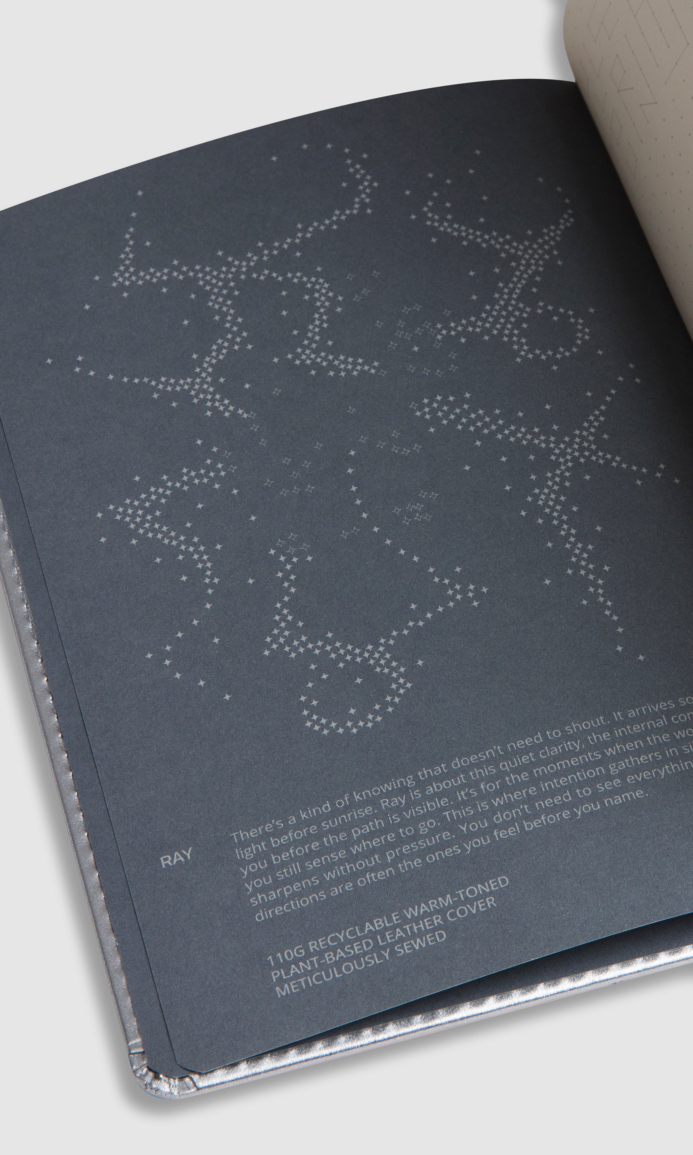 Hidden within the constellation on the first page lies a guide creature, uniquely designed for that journal. The unfilled stars are meant to be connected, revealing it once you draw the lines.