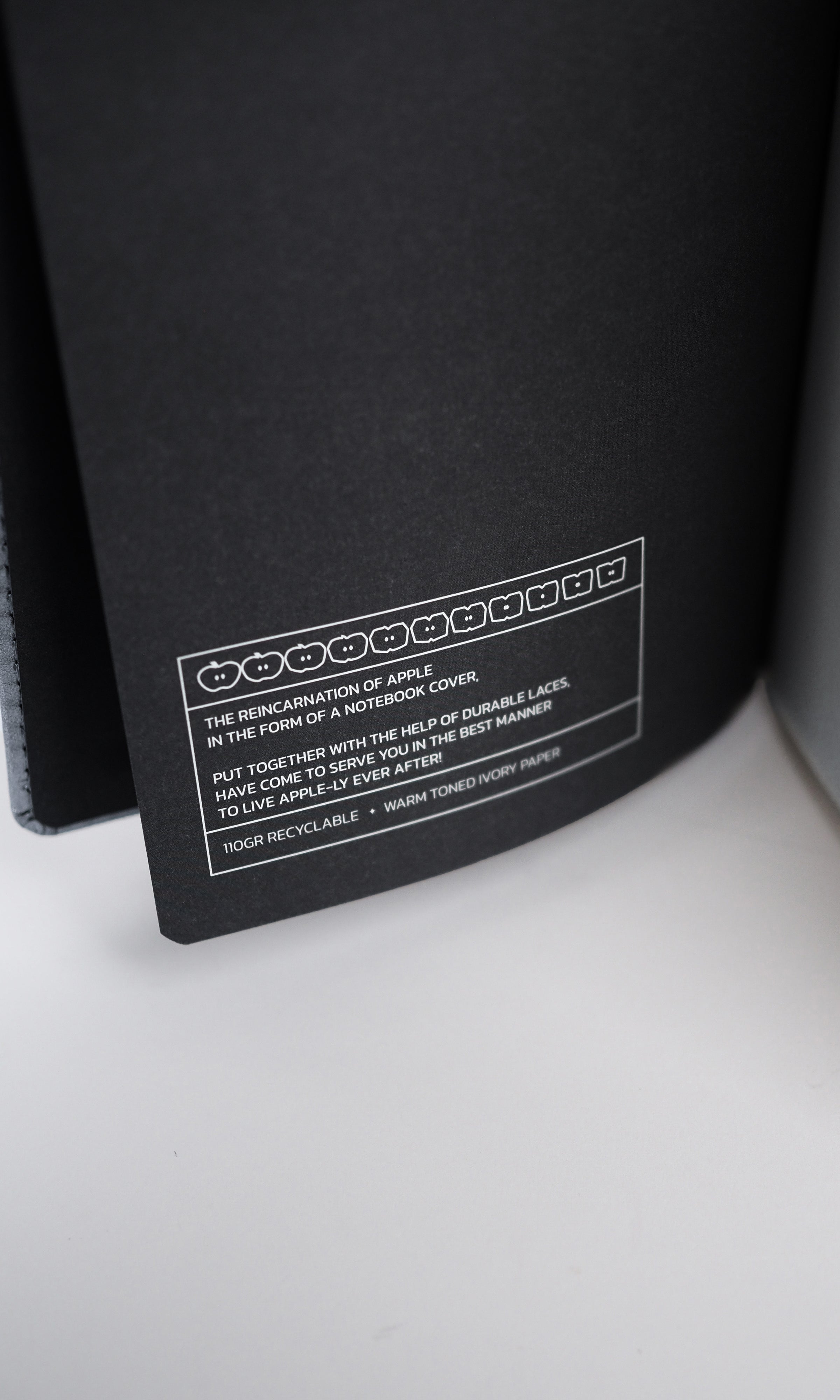 A6-size notebook to fulfill all your needs on the go. With its compact size, it fits into your small bags or even your pocket. Its warm-toned, high-quality 110-gram Ivory paper prevents ink smudges. Strong stitch binding resists daily usage and allows the notebook to lie 180 degrees flat. Our notebooks are produced by hand with ethical working conditions using plant-based leather produced from apple waste in a way that respects nature.
