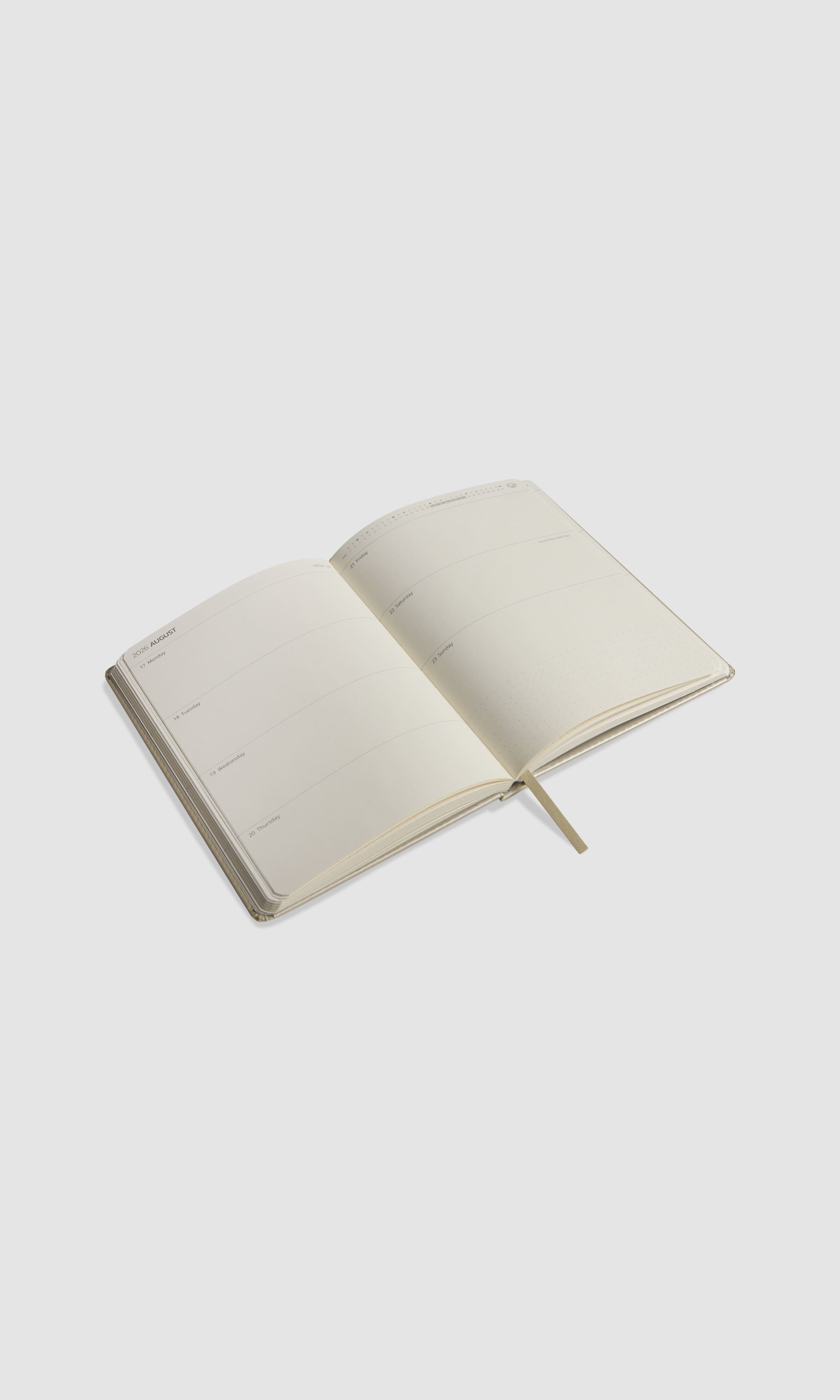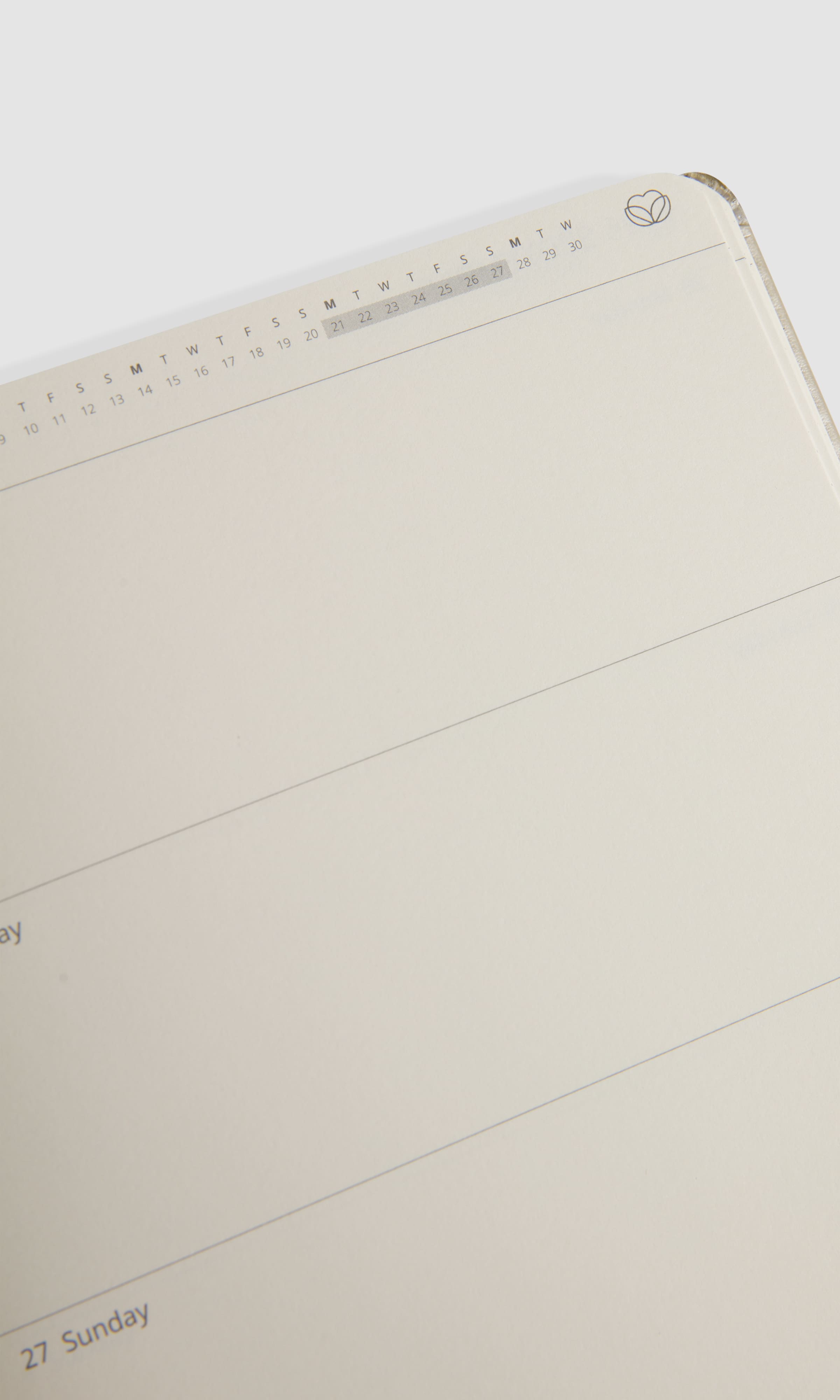 A 2026 planner created with a simple aesthetic and for practical use. The warm-toned 110 g ivory paper prevents ink bleed-through, ensuring a clean look. Lightly printed text reduces eye strain, enhancing the overall writing experience.