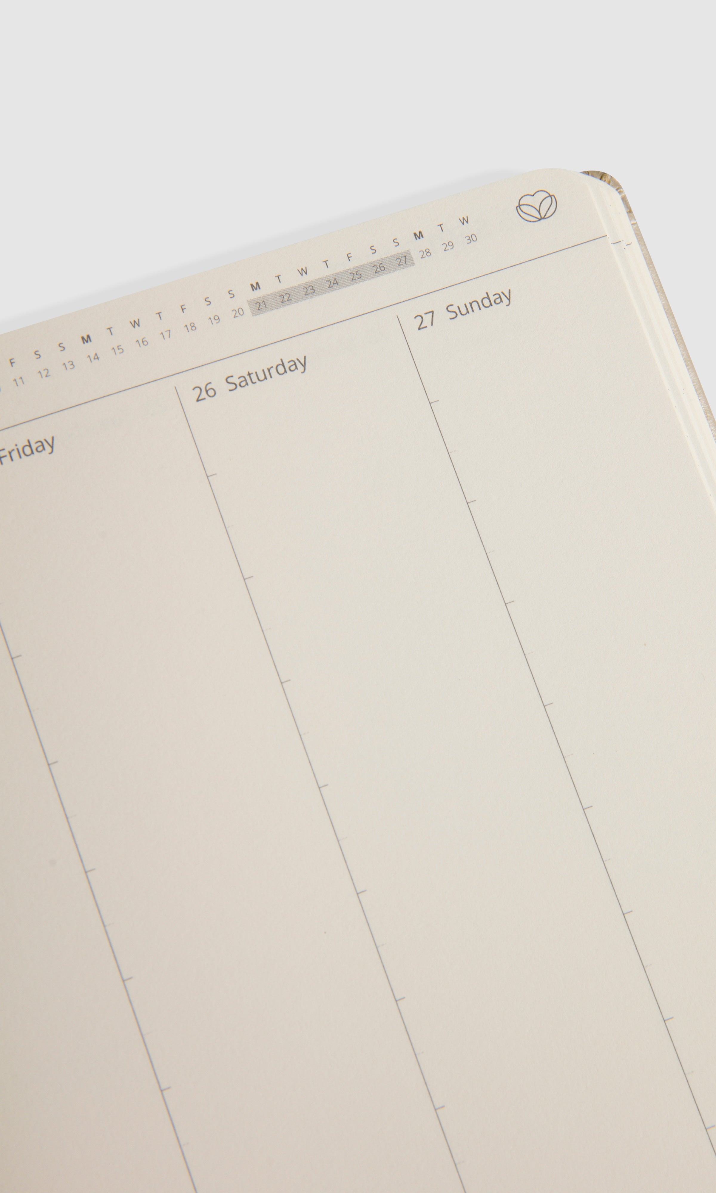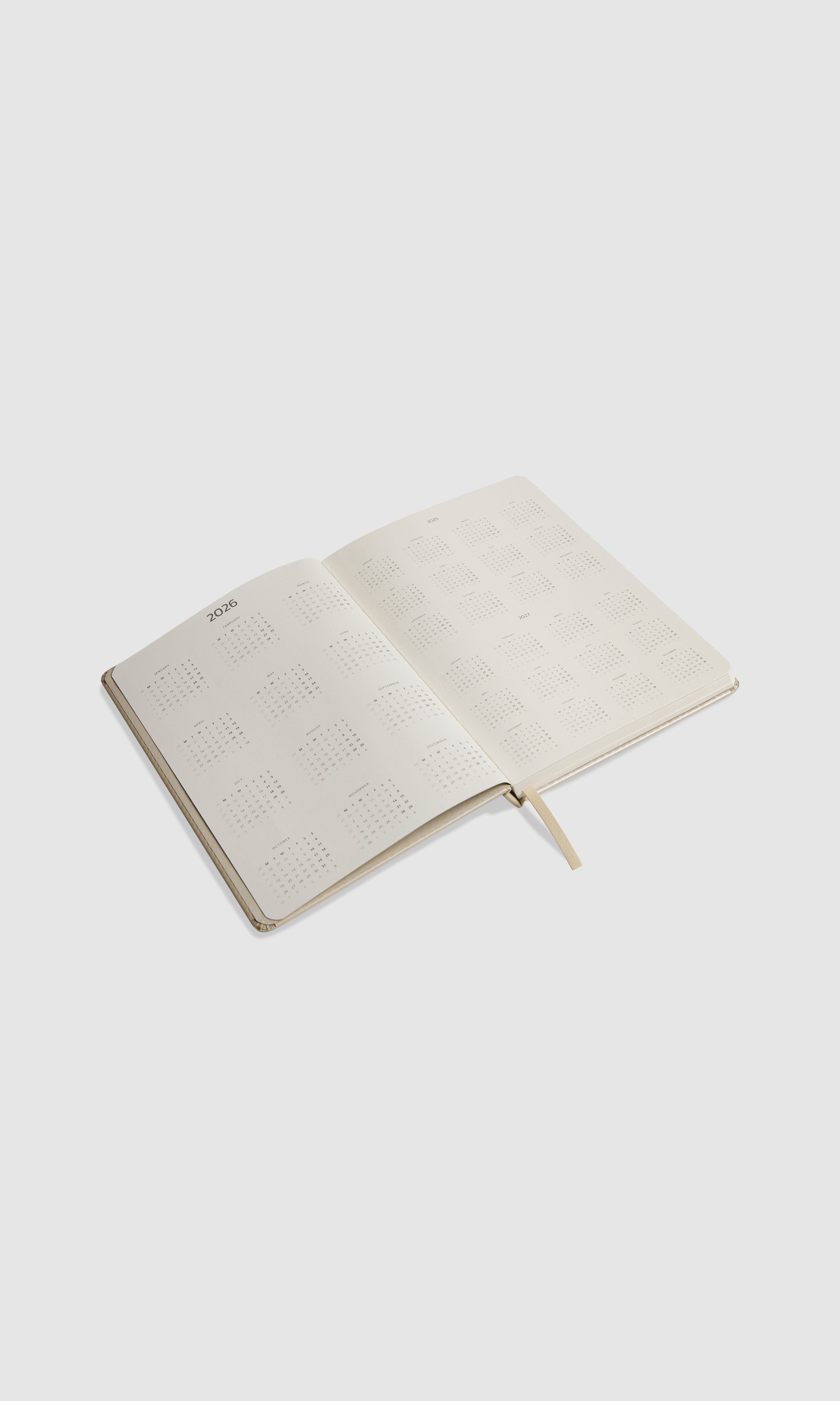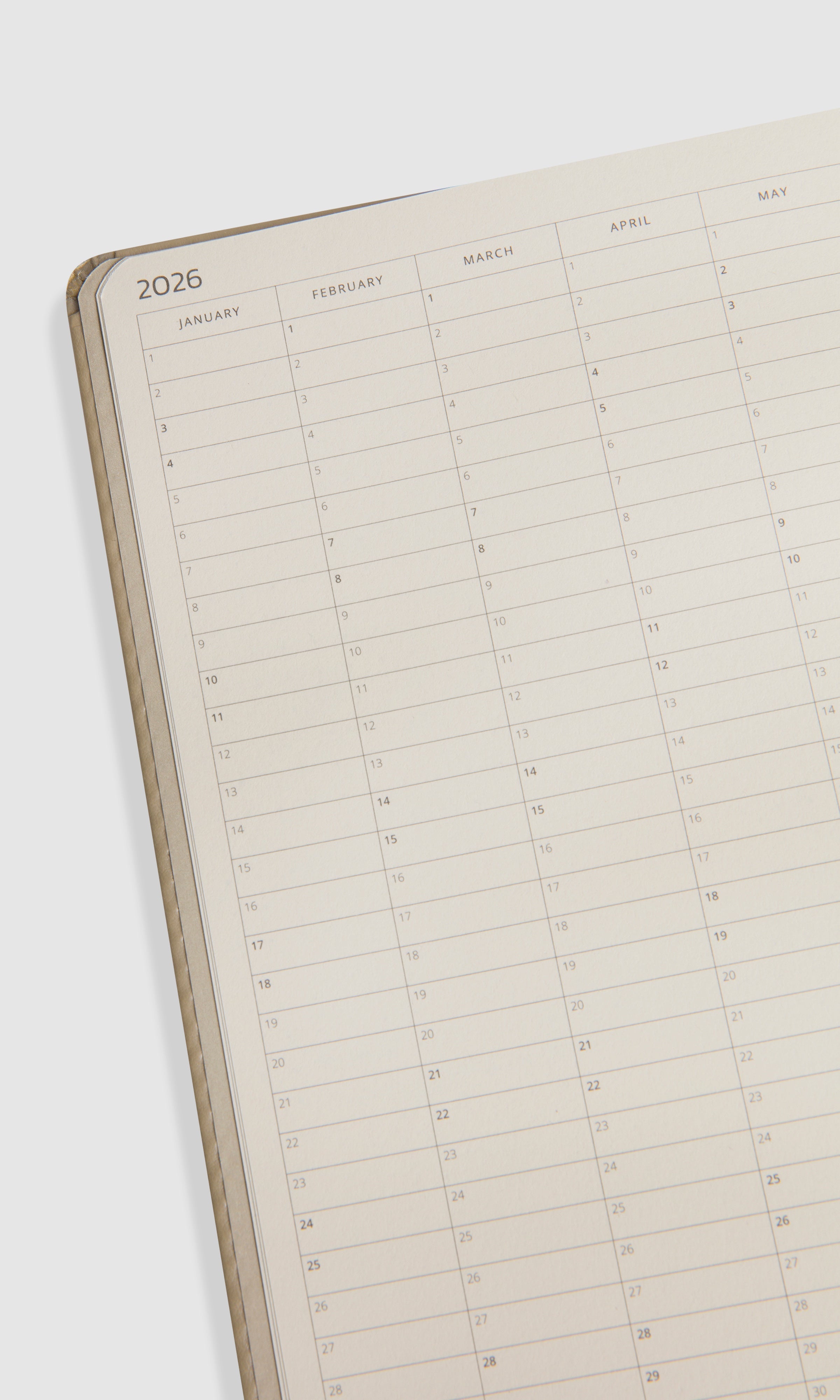 A 2026 planner created with a simple aesthetic and for practical use. The warm-toned 110 g ivory paper prevents ink bleed-through, ensuring a clean look. Lightly printed text reduces eye strain, enhancing the overall writing experience.