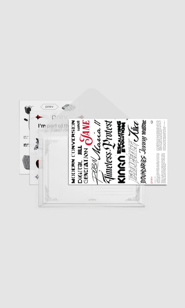 A collection of every typography Prev has used so far. And on the back, a little space waiting for your own, just in case you want to add your font to the archive.