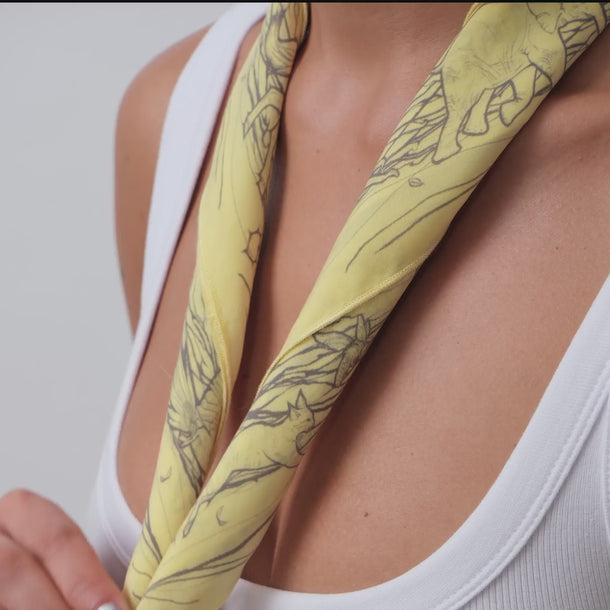 With its carefully selected color combinations, special designs, and useful yet compact size, MERCY will accompany your daily life in style. Made from vegan silk, which is produced using cotton linter; a byproduct of cotton production. MERCY bandanas can be used all year round, as vegan silk has a soft texture, breathes, quickly wicks moisture away from the skin, and is machine washable.