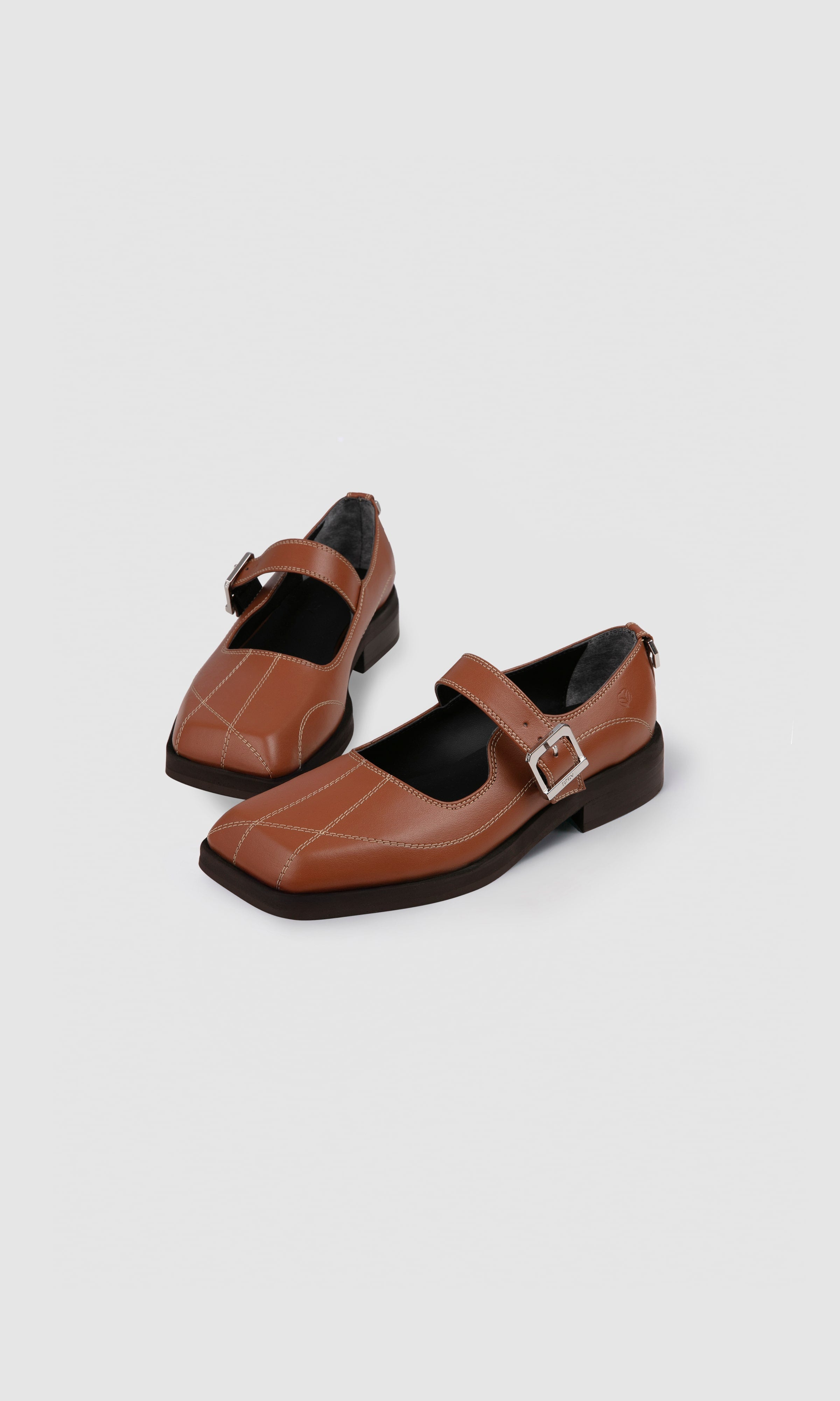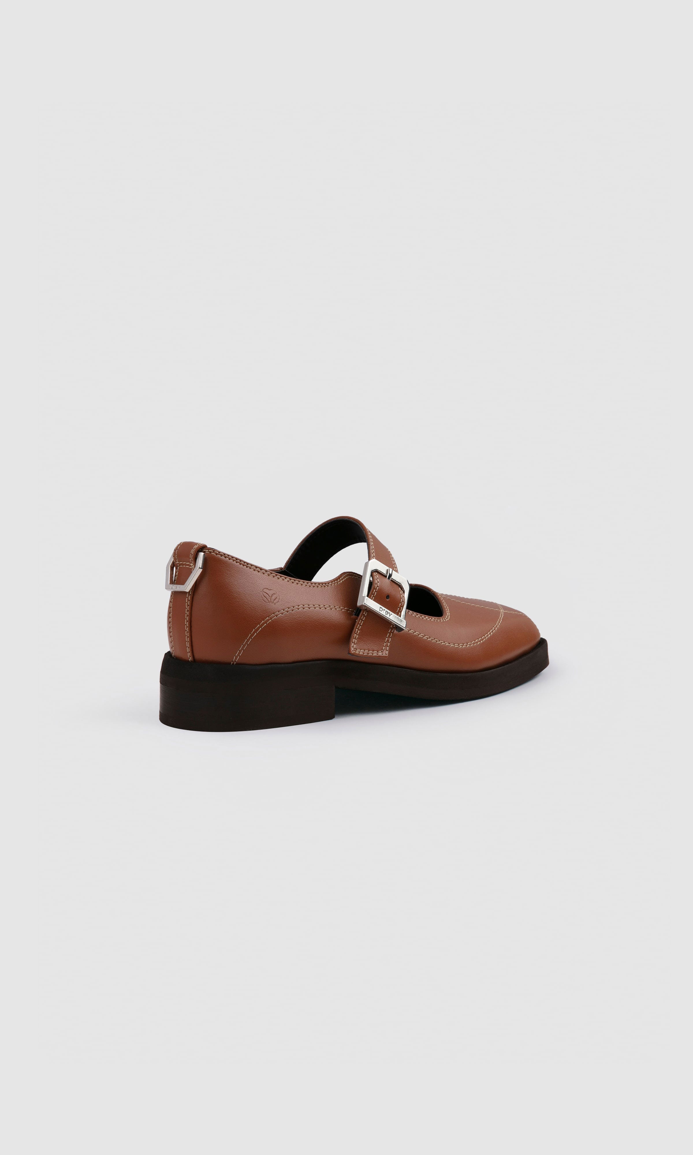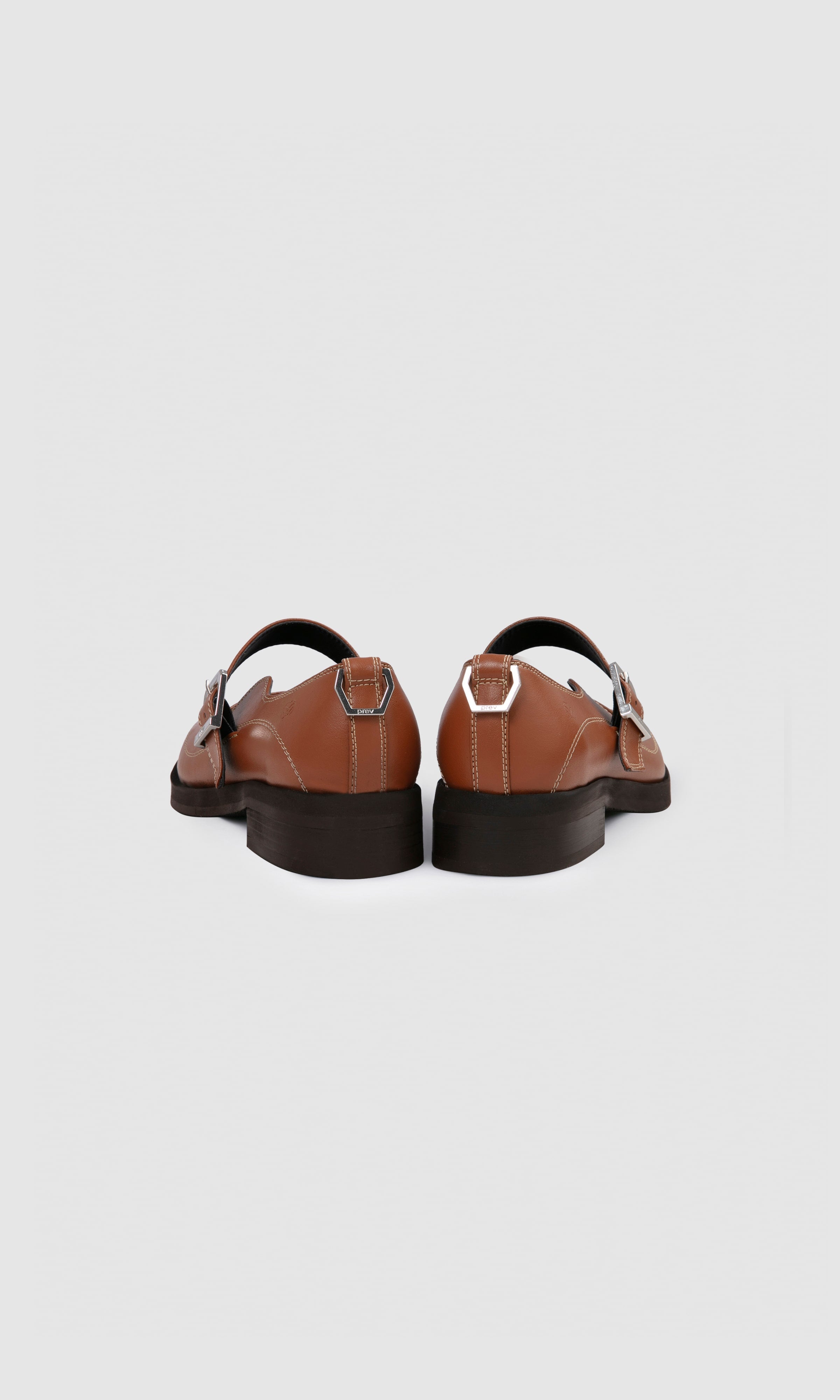Asymmetrical toe with a custom thick sole, freshly designed angular buckle with Planted Love and Prev logo, signature Prev buckle at the back, comfort and statement together with wide front mold.
