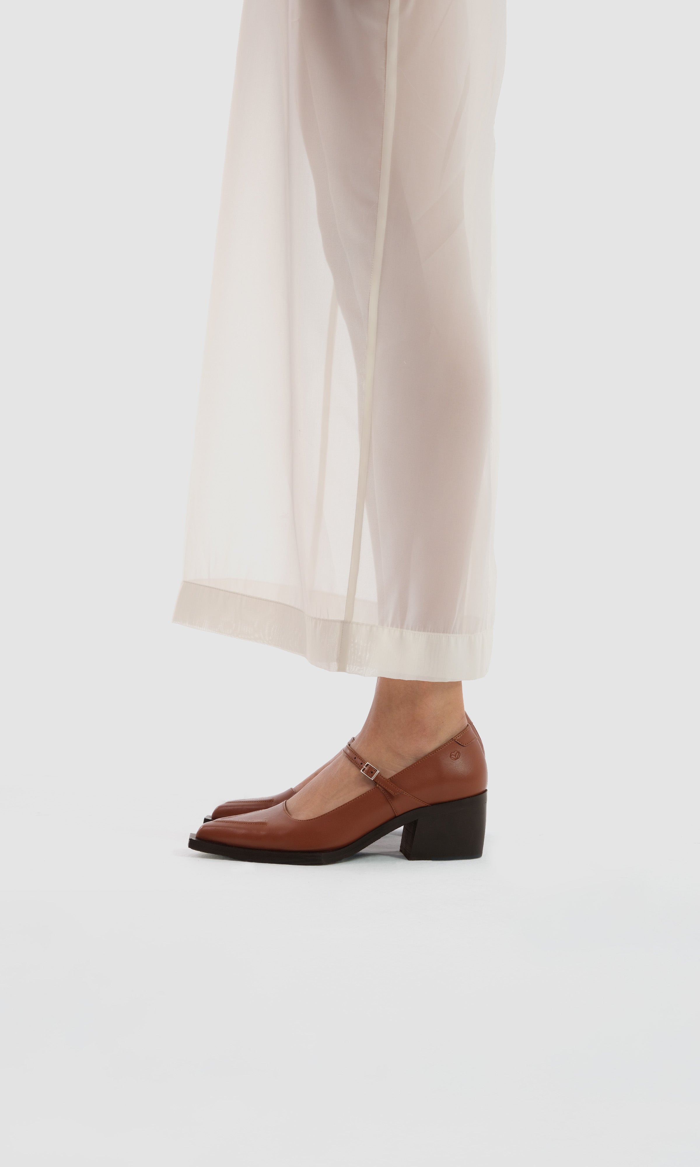 Pointed toe, ridged sole, western heel and a thin elegant buckle strap moulded in elegance and style. Gives a secret message with the V-shaped saddler detail sewn with skilful craftspeopleship on the front.