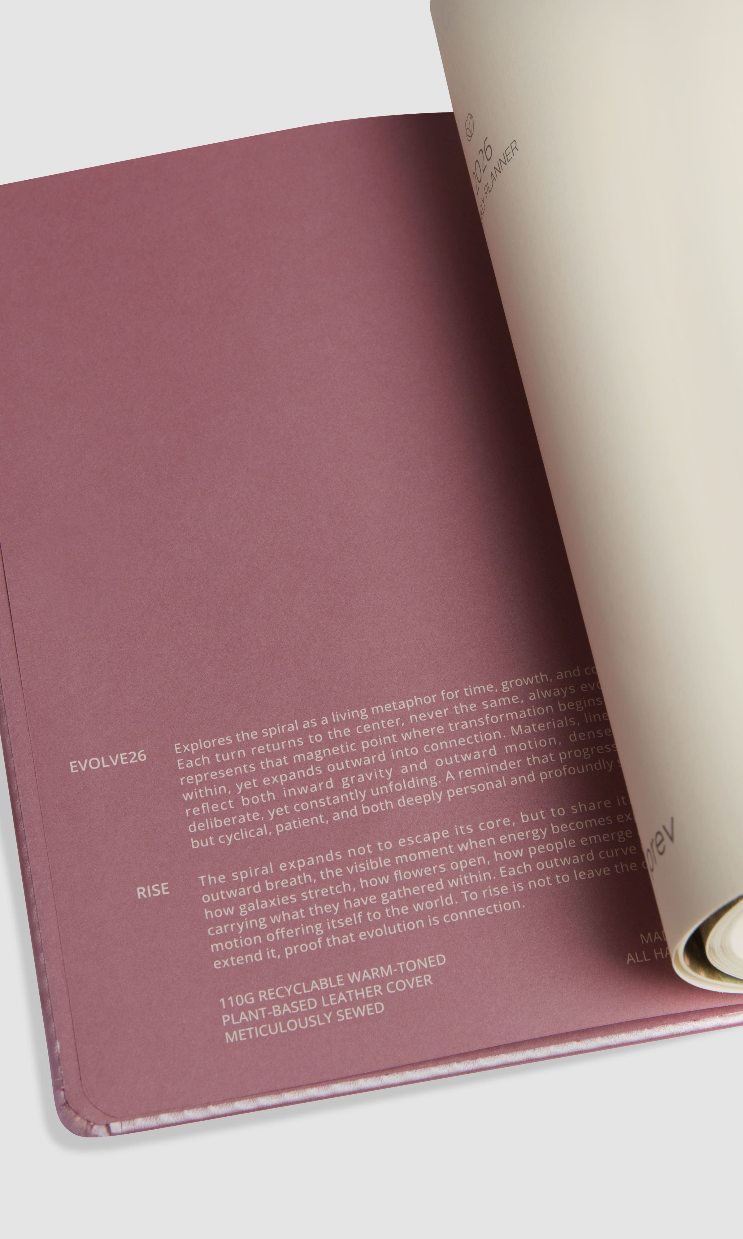 A 2026 planner created with a simple aesthetic and for practical use. The warm-toned 110 g ivory paper prevents ink bleed-through, ensuring a clean look. Lightly printed text reduces eye strain, enhancing the overall writing experience.