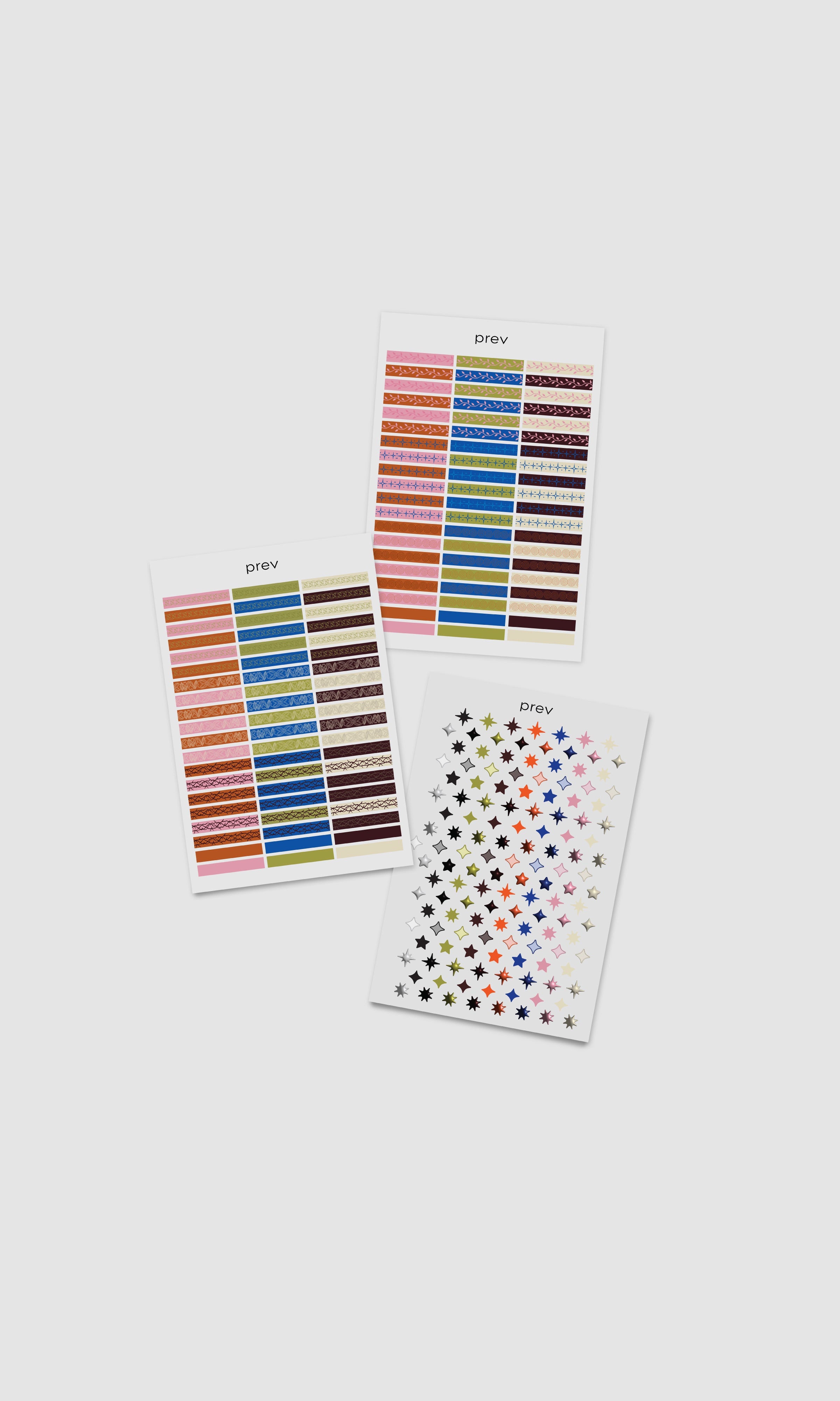 Cosmic accents and strip-style stickers designed to hold pieces in place, outline thoughts, highlight sections, and turn any layout into something intentional.