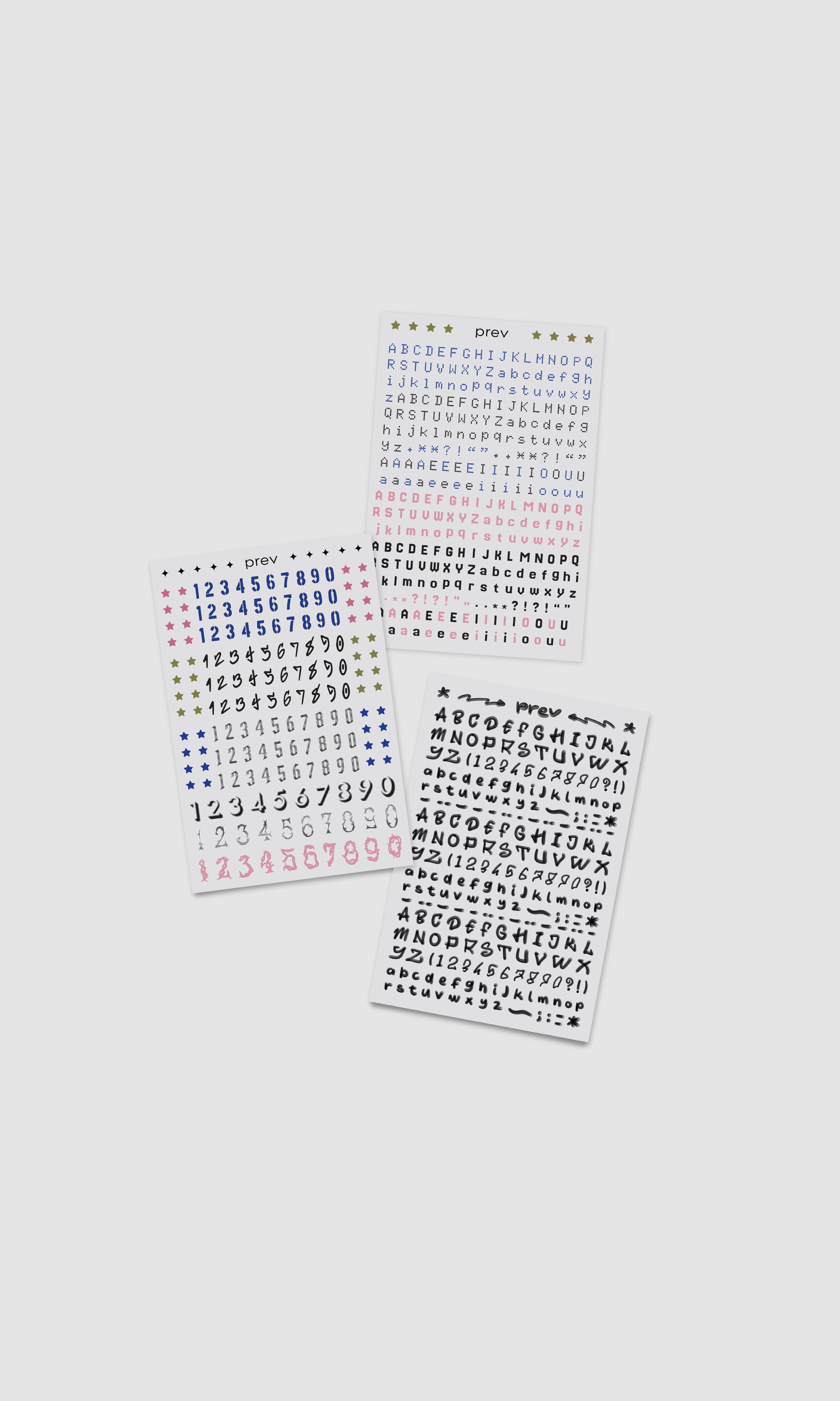 Letters, numbers, and spraytype details that help you title pages, label lists, mark dates, create headers, and bring clarity to anything you write.