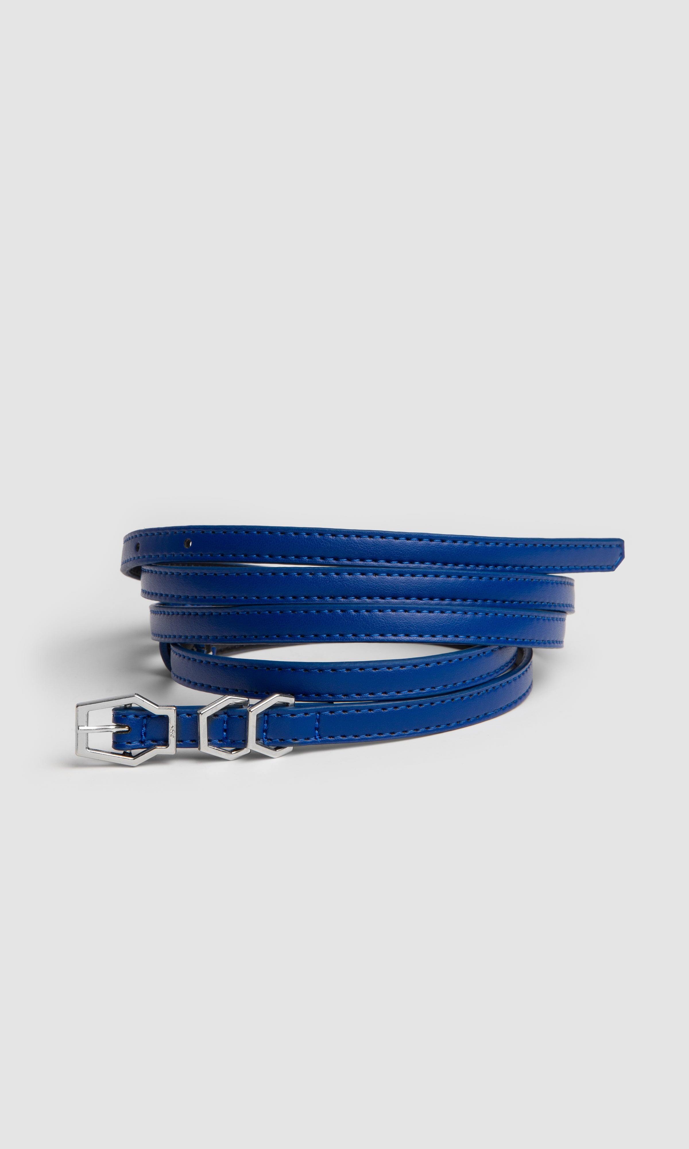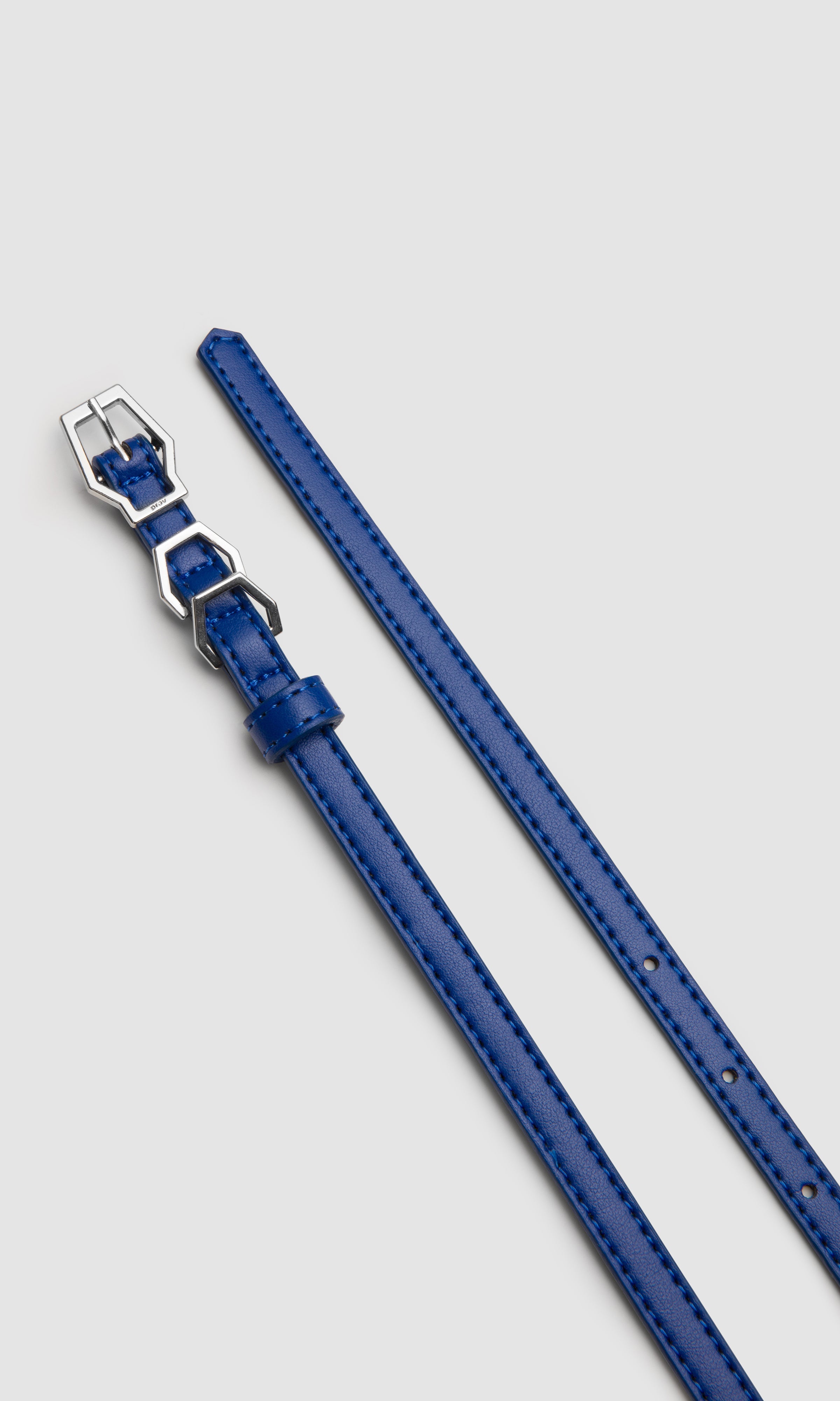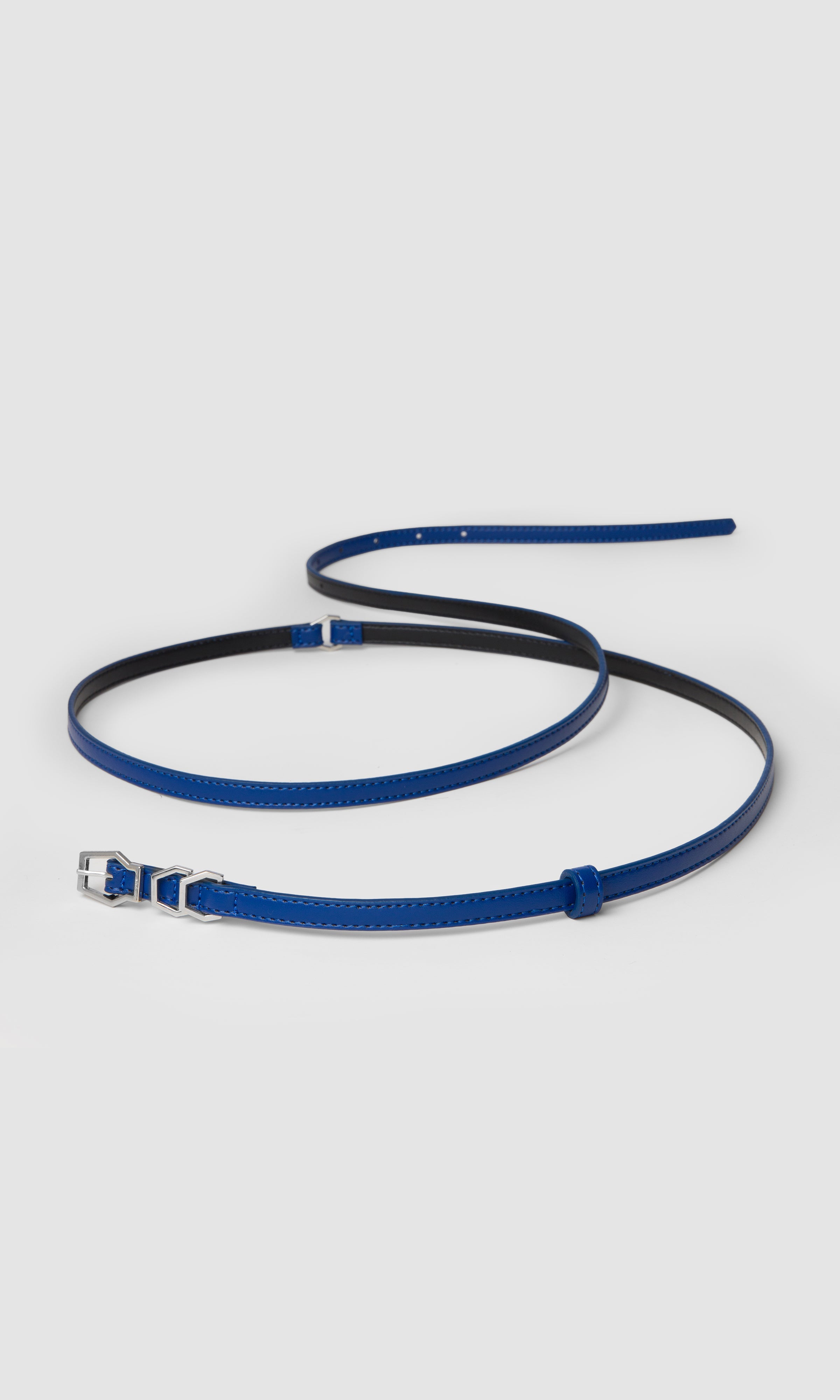 Featuring the Karel buckle, this belt is defined by a form inspired by hexagonal geometry, shaping the silhouette and reinforcing its structure. One of its three buckles serves as a connecting element, while its length allows the belt to wrap twice around the waist. The remaining two buckles function as belt loops, offering the option to add charms and shift the character of the look. When styled with dresses or blazer jackets, it creates a strong presence; worn with everyday denim or as the defining element of an outfit, it sits in harmony with the body for a refined appearance.