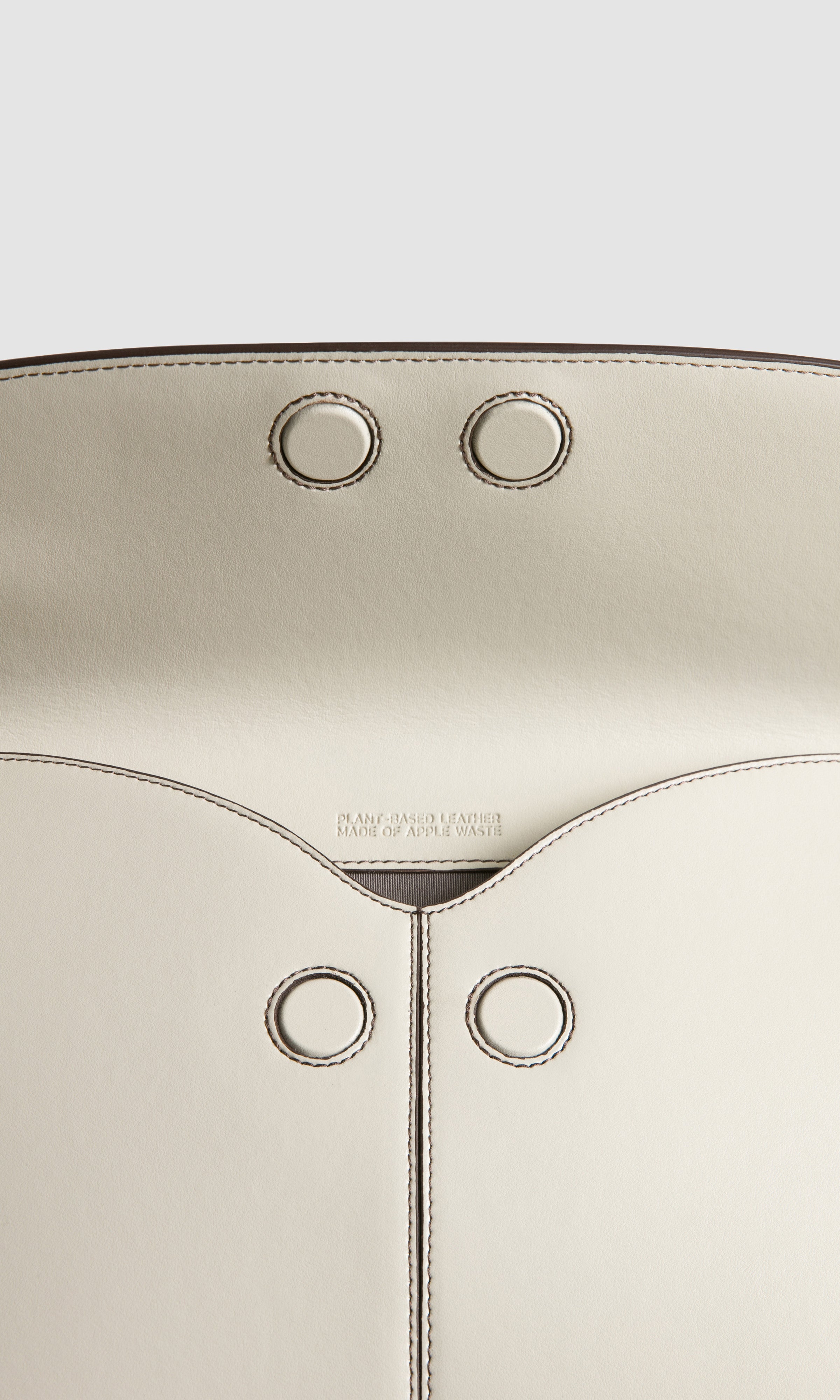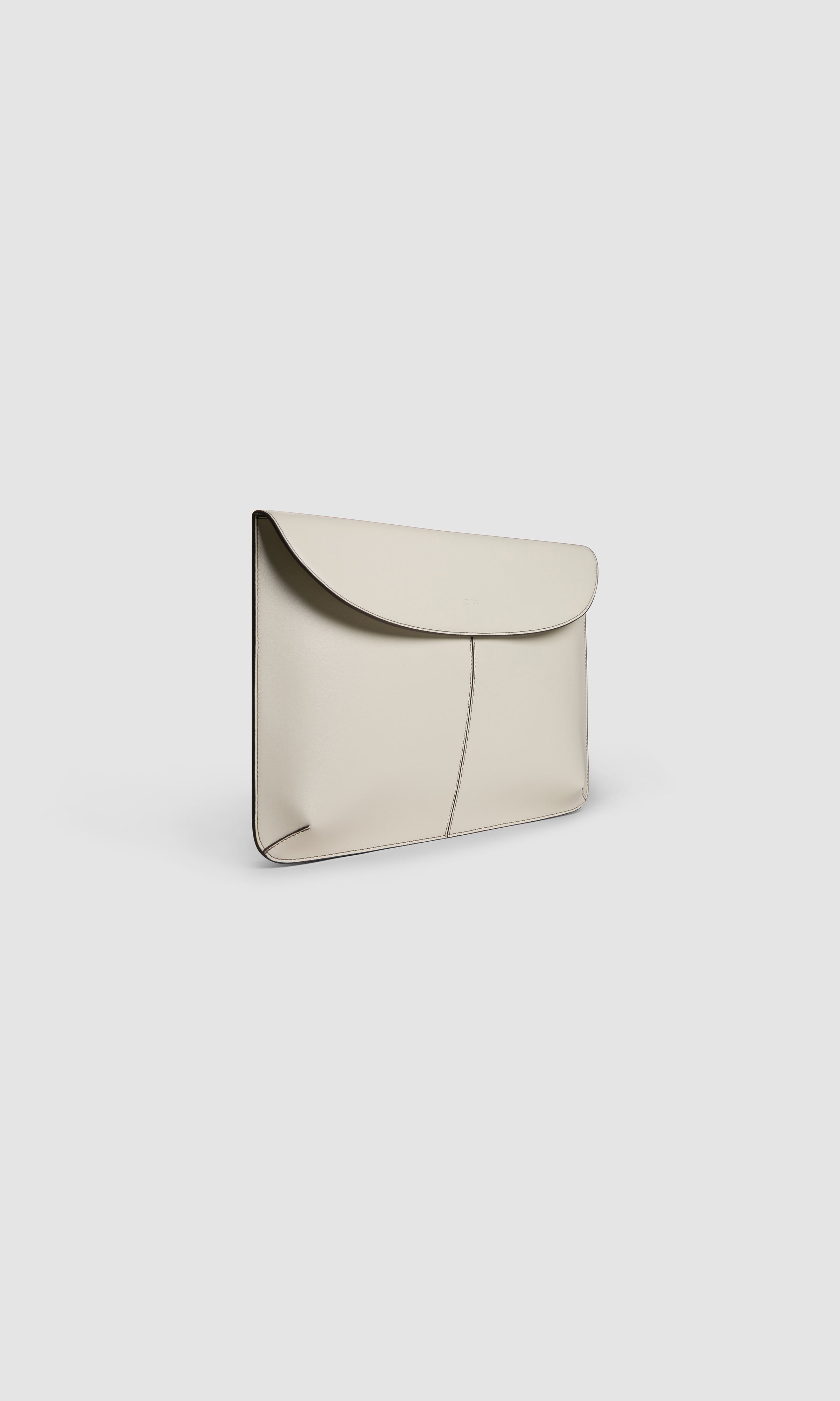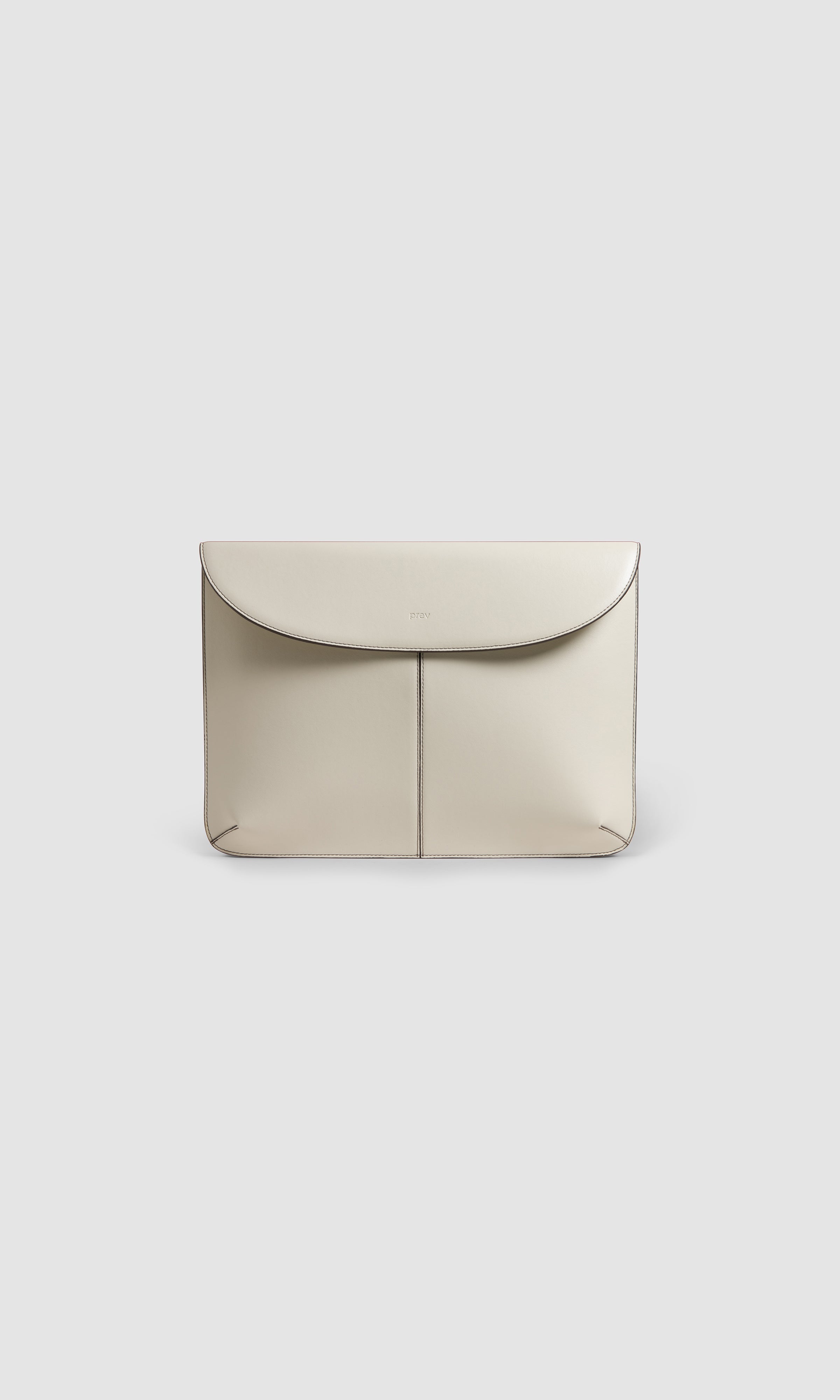 A spacious laptop bag designed for all occasions. The interior is thoughtfully structured to carry not only a laptop but also a charger, files, and notebooks. Two large inner pockets securely store smaller accessories. The magnetic closure system ensures both safety and ease of movement. The bag retains its upright and distinguished silhouette without compromising its form. It now features a rear rectangular slip-through handle for a more comfortable grip or effortless carrying by hand or arm. Comes with a protective bag made from recyclable cotton.